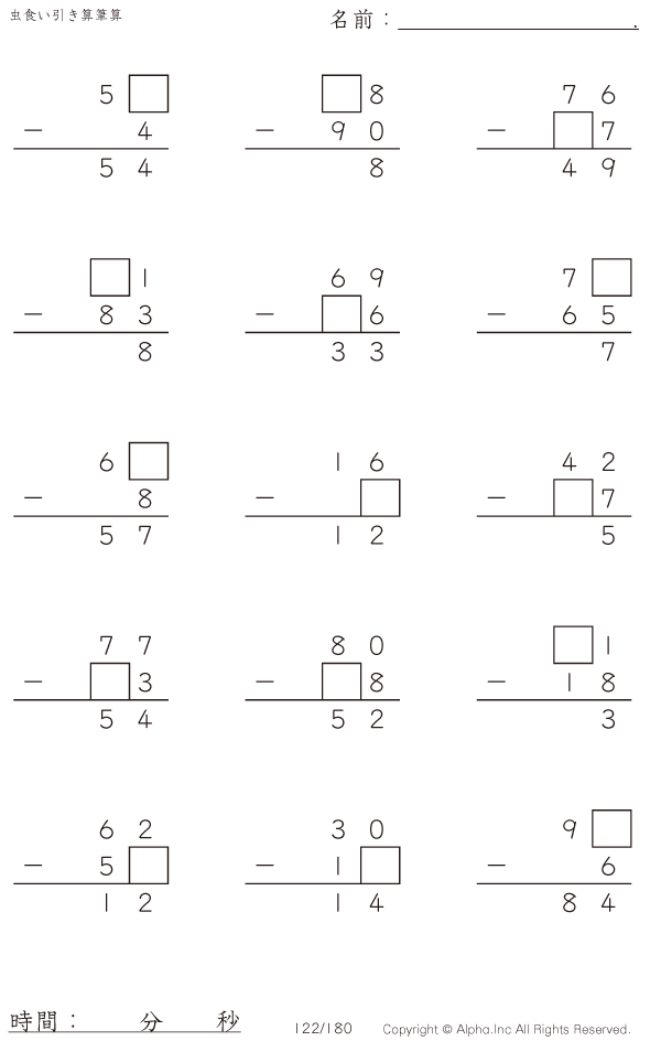 虫食い・2桁-2桁の筆算1 [問題]122/180