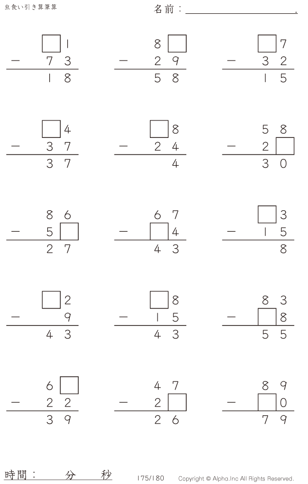 虫食い・2桁-2桁の筆算1 [問題]175/180