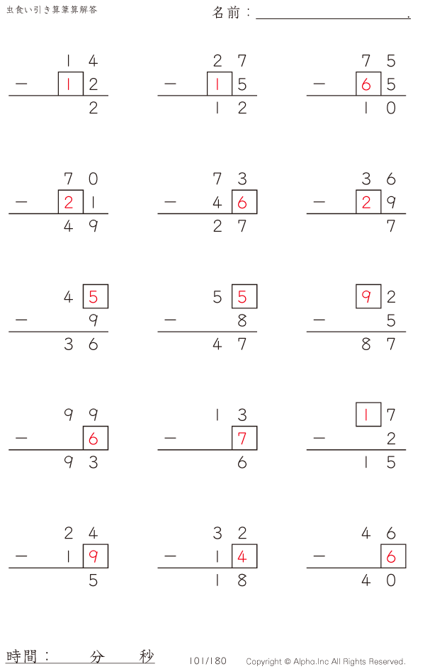 虫食い・2桁-2桁の筆算1 [解答]101/180