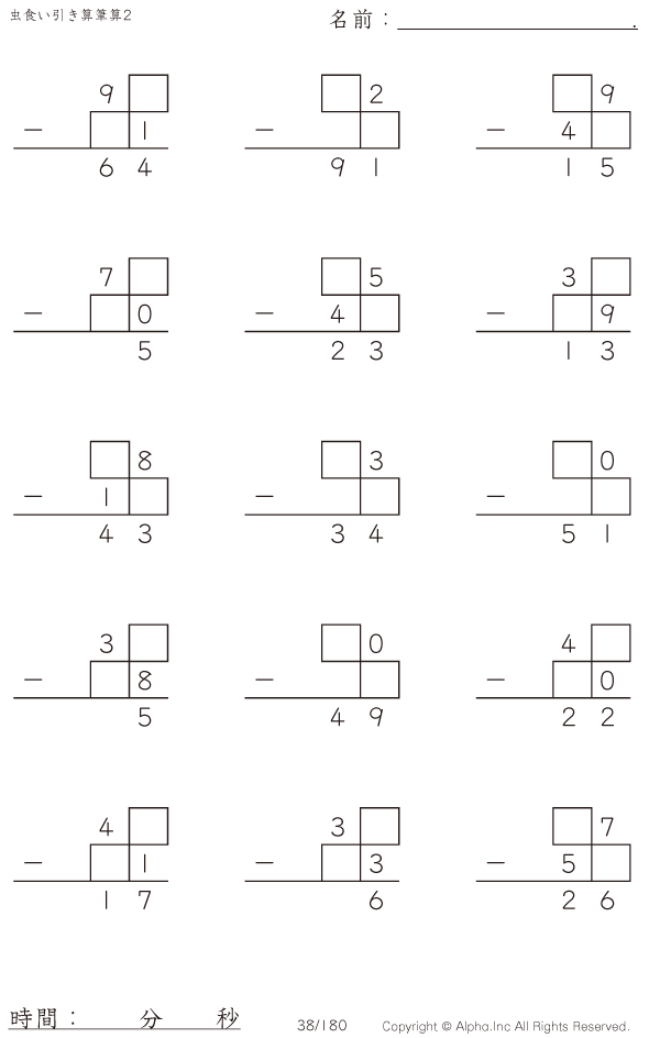 虫食い・2桁-2桁の筆算2 [問題]038/180