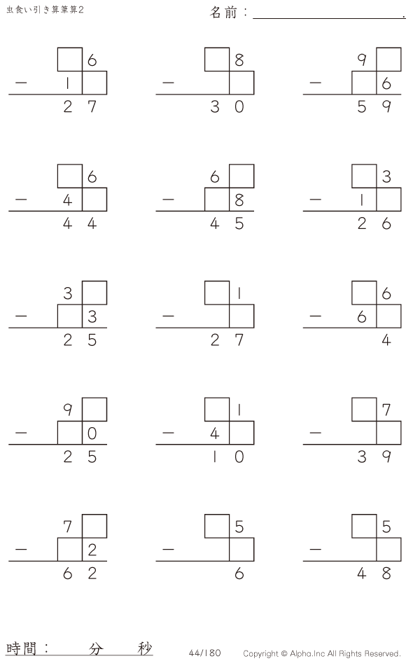 虫食い・2桁-2桁の筆算2 [問題]044/180