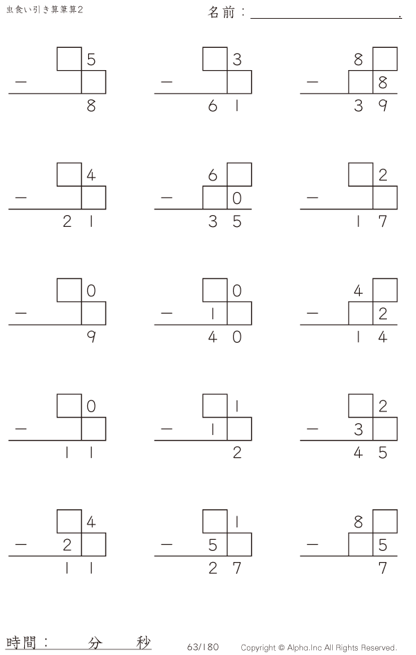 虫食い・2桁-2桁の筆算2 [問題]063/180