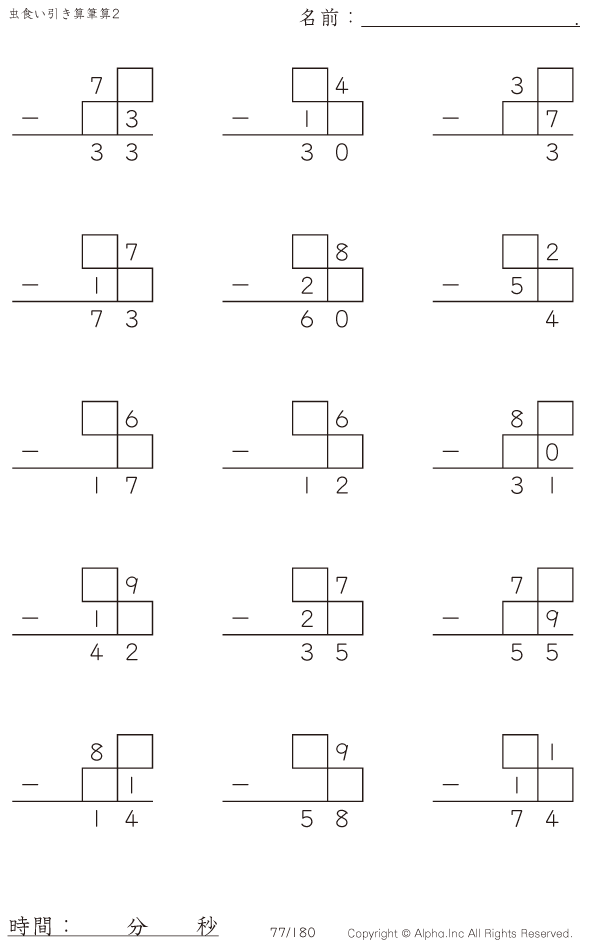 虫食い・2桁-2桁の筆算2 [問題]077/180