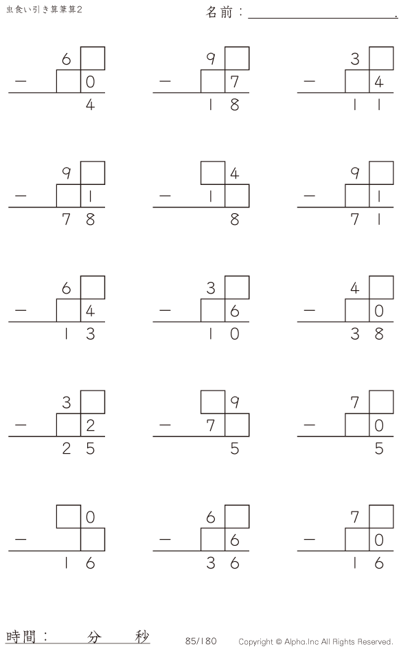虫食い・2桁-2桁の筆算2 [問題]085/180