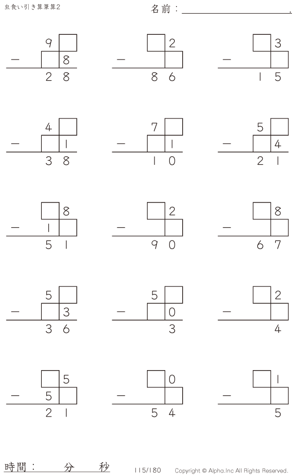 虫食い・2桁-2桁の筆算2 [問題]115/180