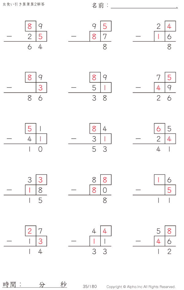 虫食い・2桁-2桁の筆算2 [解答]035/180