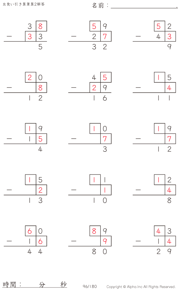 虫食い・2桁-2桁の筆算2 [解答]096/180