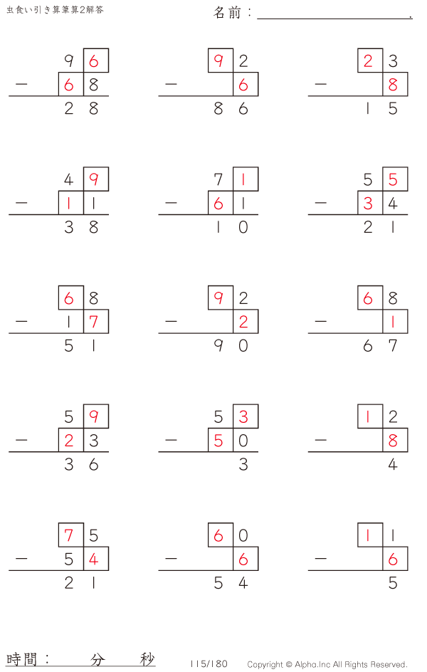 虫食い・2桁-2桁の筆算2 [解答]115/180