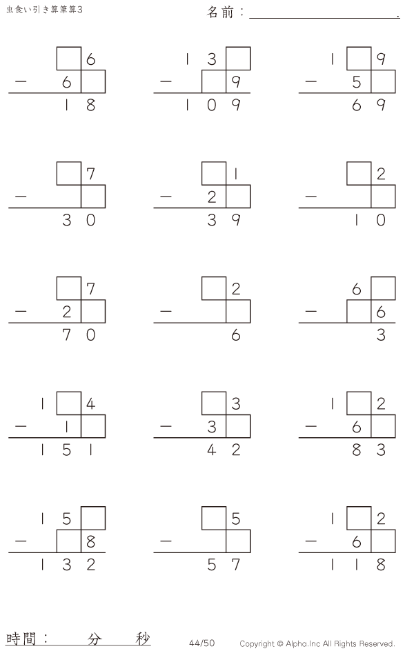 虫食い・3桁-2桁の筆算1(199まで) [問題]044/050