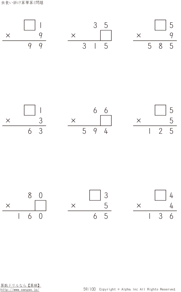 虫食い・2桁×1桁の筆算 [問題]059/100