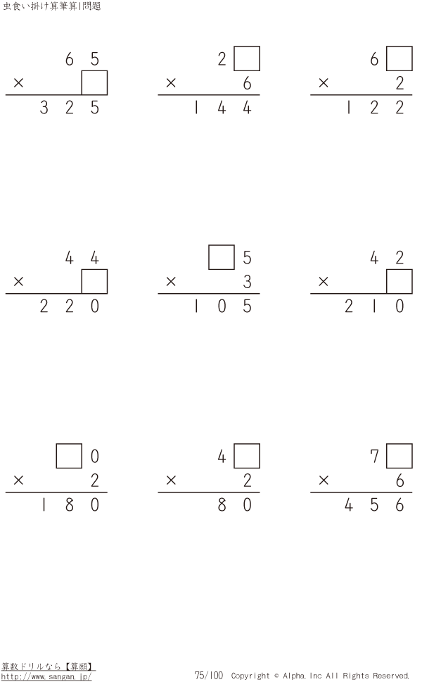 虫食い・2桁×1桁の筆算 [問題]075/100