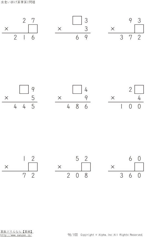 虫食い・2桁×1桁の筆算 [問題]096/100