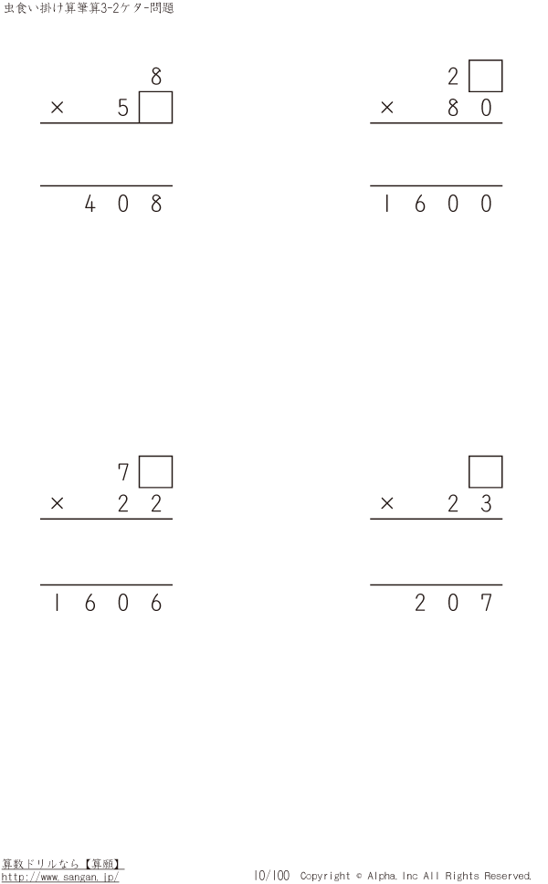 虫食い・2桁×2桁の筆算 [問題]010/100