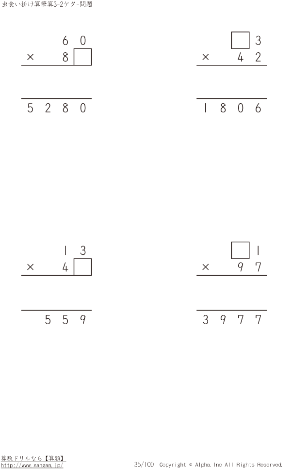 虫食い・2桁×2桁の筆算 [問題]035/100