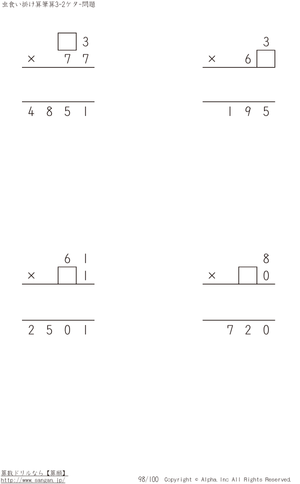 虫食い・2桁×2桁の筆算 [問題]098/100