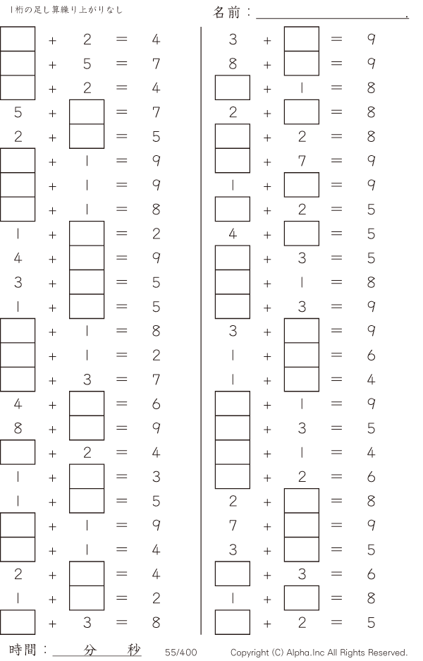 虫食い・1桁の足し算1(繰り上がりなし) [問題]055/400