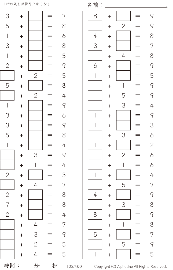 虫食い・1桁の足し算1(繰り上がりなし) [問題]103/400