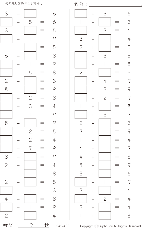虫食い・1桁の足し算1(繰り上がりなし) [問題]242/400