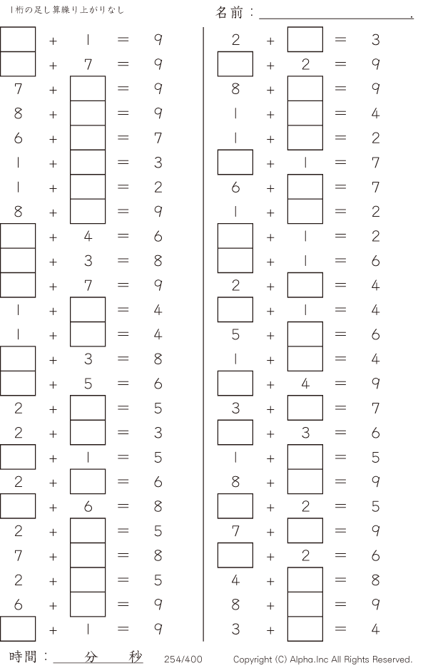 虫食い・1桁の足し算1(繰り上がりなし) [問題]254/400