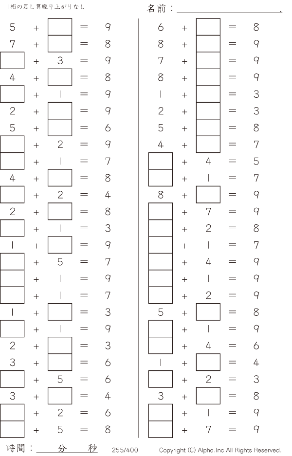 虫食い・1桁の足し算1(繰り上がりなし) [問題]255/400