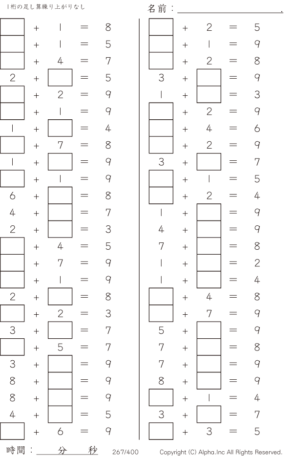 虫食い・1桁の足し算1(繰り上がりなし) [問題]267/400