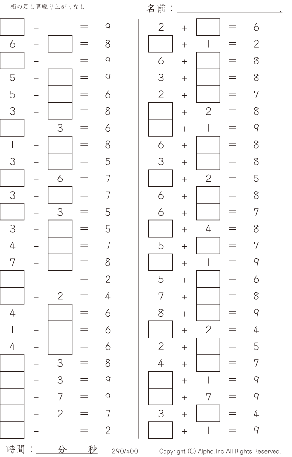 虫食い・1桁の足し算1(繰り上がりなし) [問題]290/400