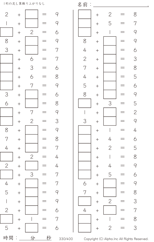 虫食い・1桁の足し算1(繰り上がりなし) [問題]330/400