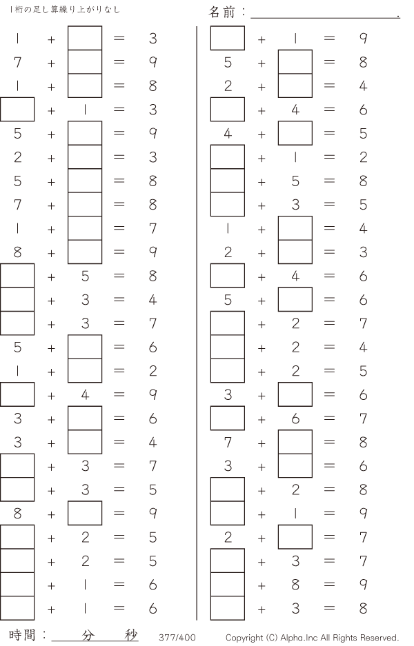 虫食い・1桁の足し算1(繰り上がりなし) [問題]377/400