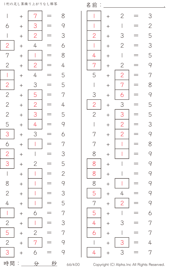虫食い・1桁の足し算1(繰り上がりなし) [解答]066/400