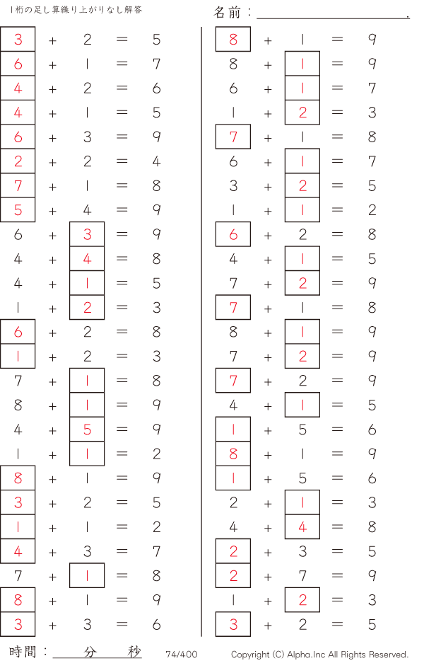 虫食い・1桁の足し算1(繰り上がりなし) [解答]074/400