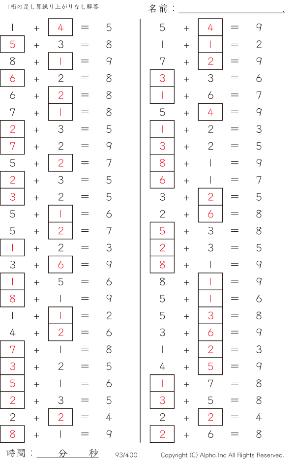 虫食い・1桁の足し算1(繰り上がりなし) [解答]093/400