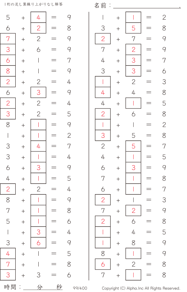 虫食い・1桁の足し算1(繰り上がりなし) [解答]099/400