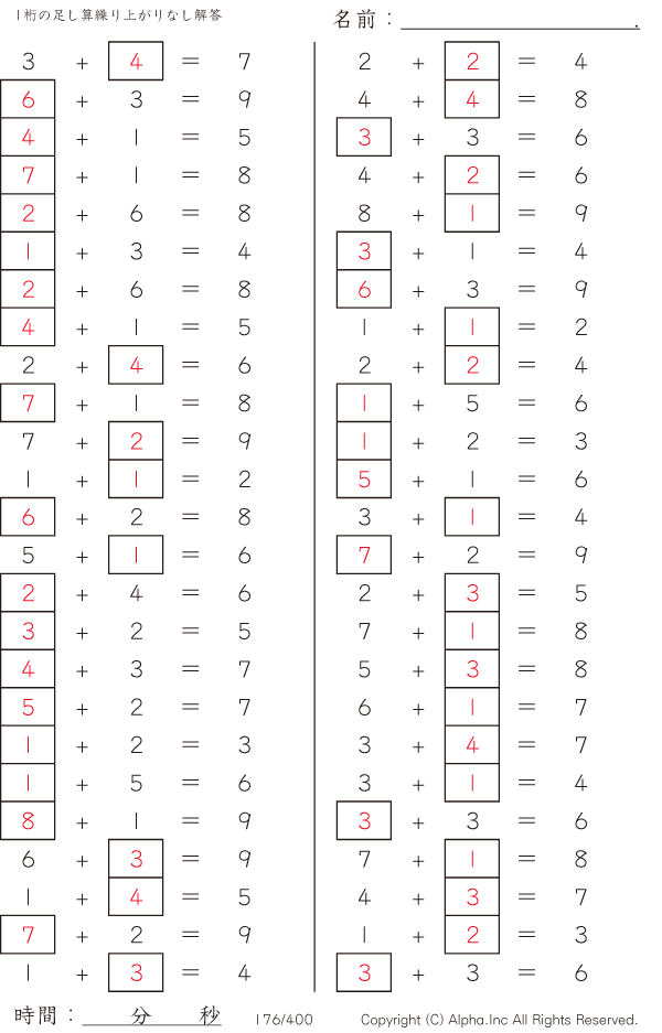虫食い・1桁の足し算1(繰り上がりなし) [解答]176/400