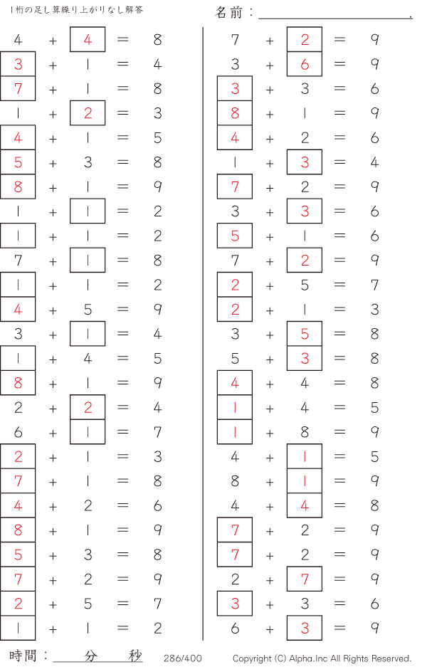 虫食い・1桁の足し算1(繰り上がりなし) [解答]286/400