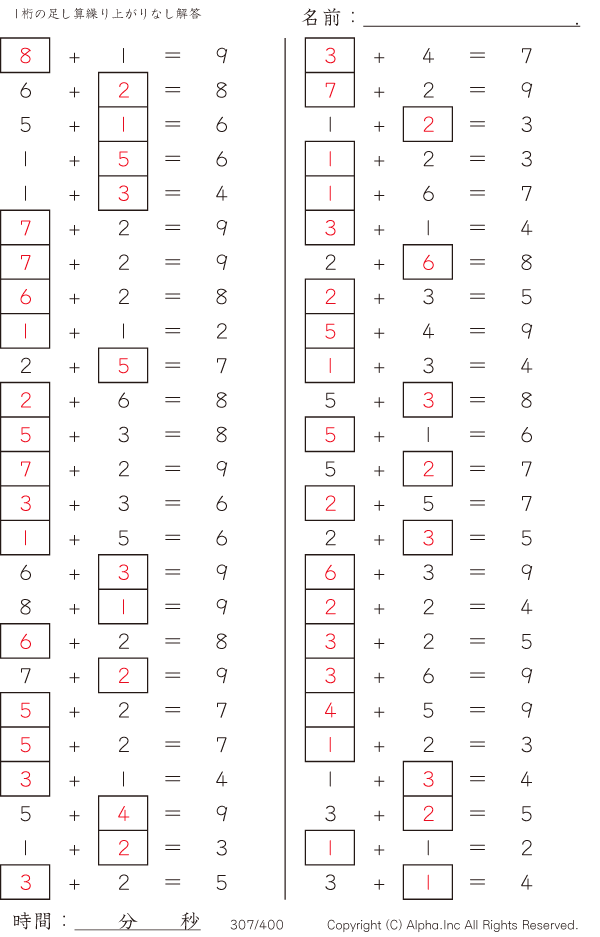 虫食い・1桁の足し算1(繰り上がりなし) [解答]307/400