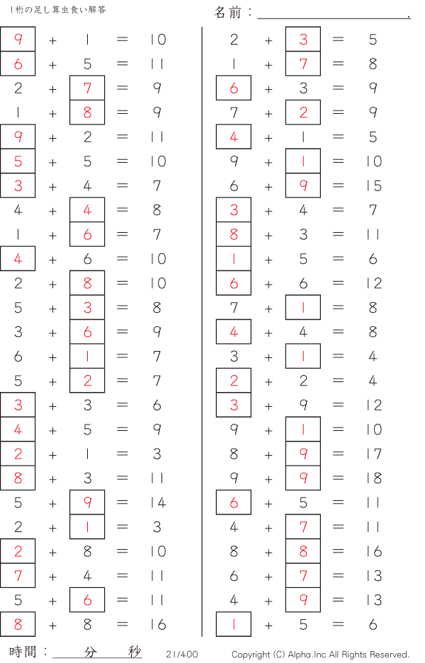 1桁の足し算2 [解答]021/400