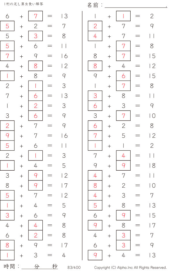 1桁の足し算2 [解答]083/400