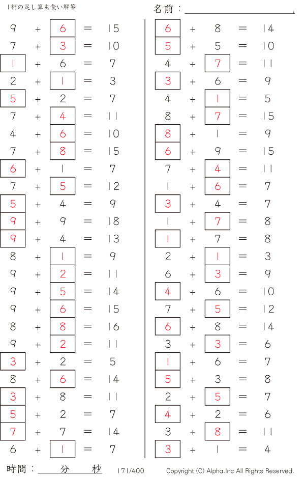 1桁の足し算2 [解答]171/400