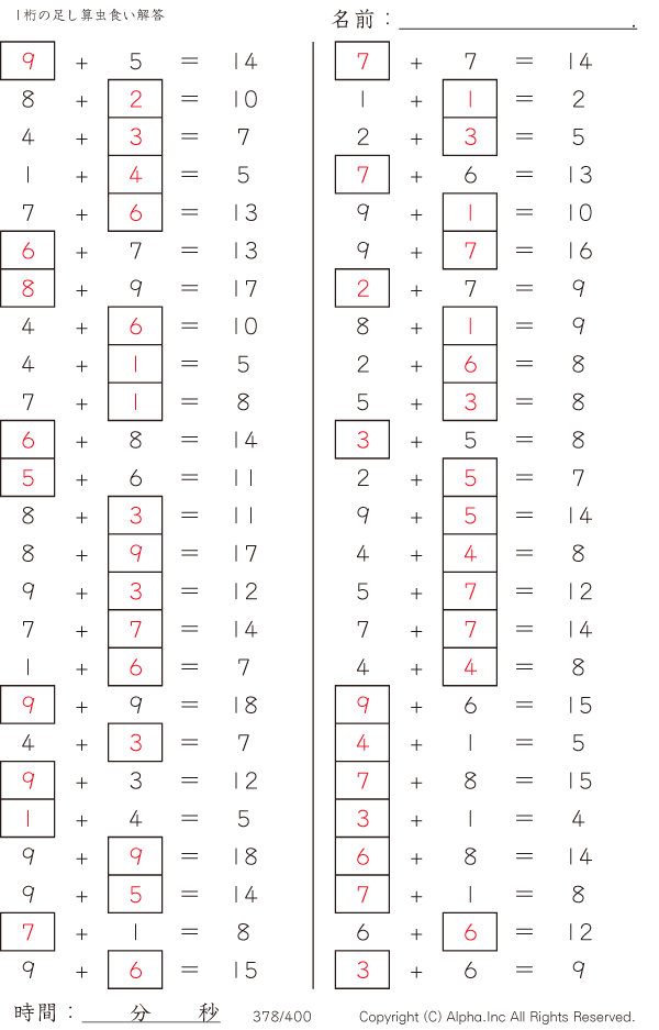 1桁の足し算2 [解答]378/400