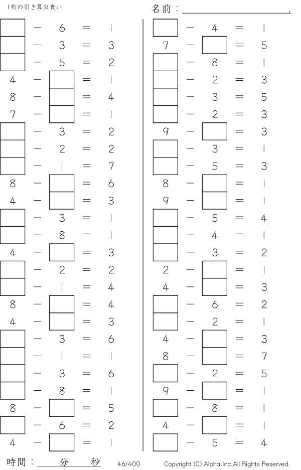 1桁の引き算1(繰り下がりなし) [問題]046/400