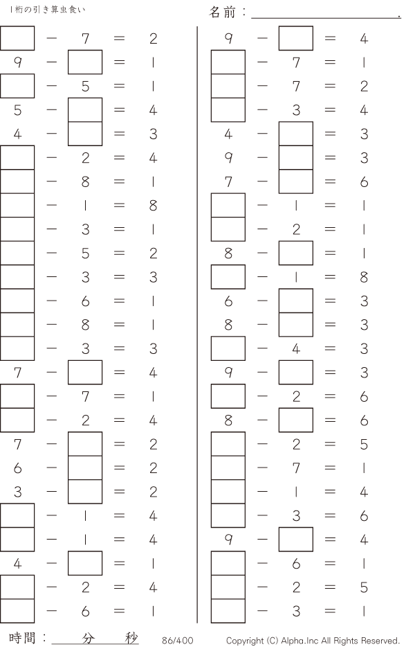 1桁の引き算1(繰り下がりなし) [問題]086/400