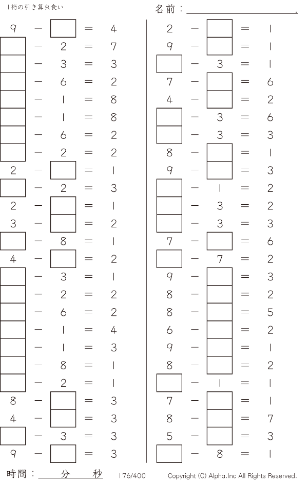1桁の引き算1(繰り下がりなし) [問題]176/400