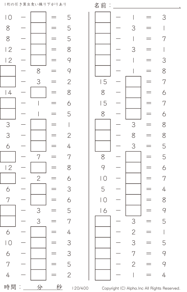 1桁の引き算2(繰り下がりあり) [問題]120/400