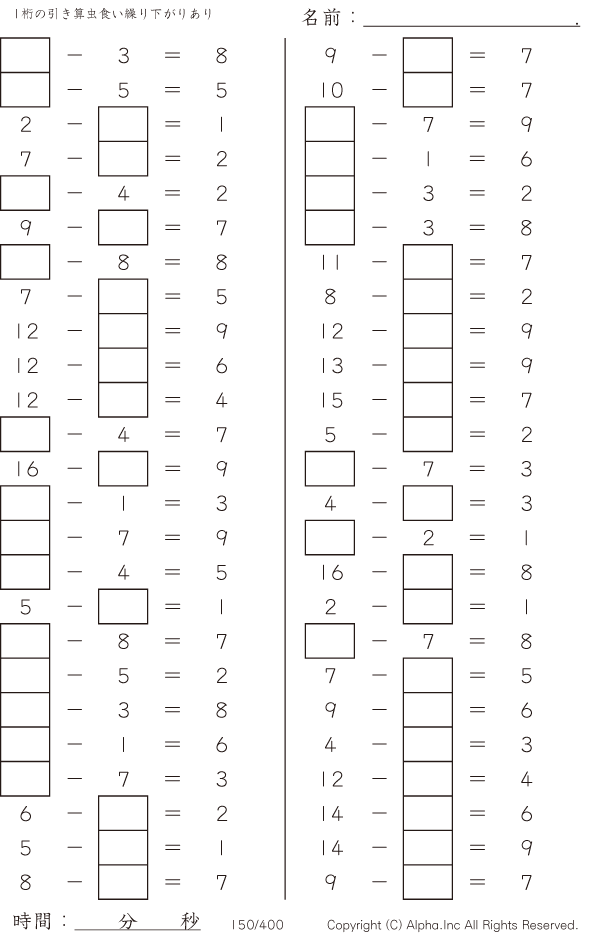 1桁の引き算2(繰り下がりあり) [問題]150/400