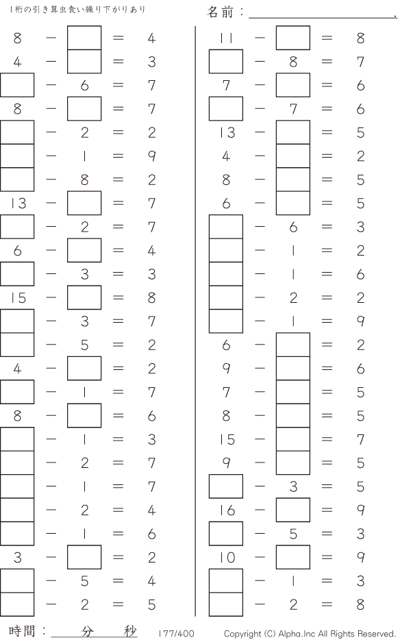 1桁の引き算2(繰り下がりあり) [問題]177/400