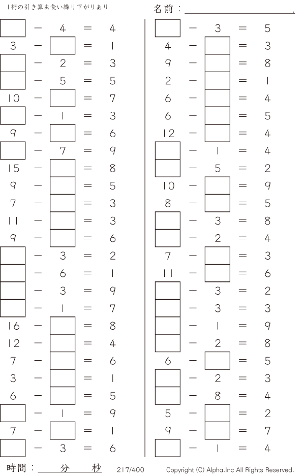 1桁の引き算2(繰り下がりあり) [問題]217/400