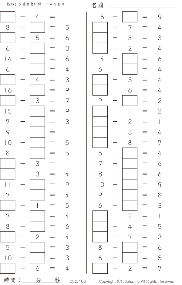1桁の引き算2(繰り下がりあり) [問題]252/400