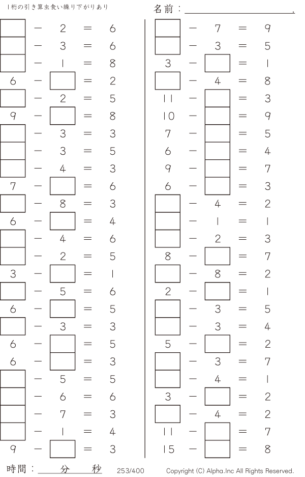 1桁の引き算2(繰り下がりあり) [問題]253/400