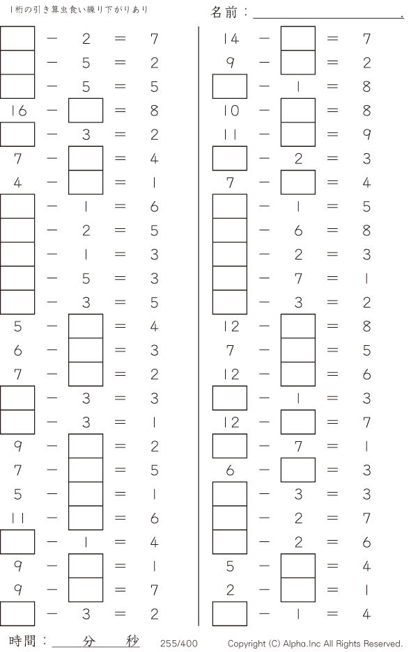 1桁の引き算2(繰り下がりあり) [問題]255/400