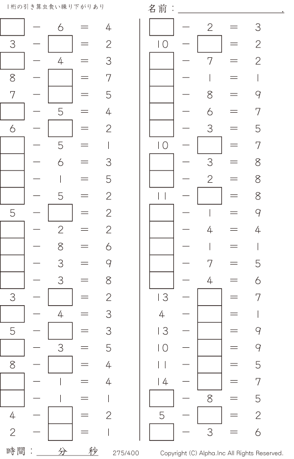 1桁の引き算2(繰り下がりあり) [問題]275/400